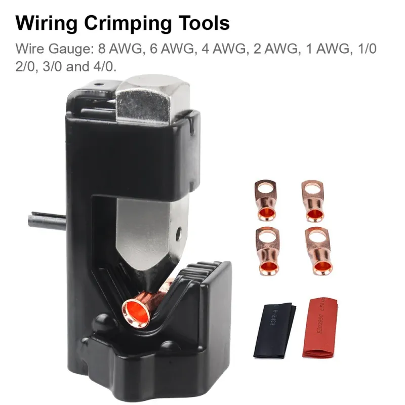 Universal Hammer Type Crimping Tool Spring Loaded Cable Lug Crimper Stainless Steel Wire Gauge 8 AWG to 4/0 Electrical Terminal Crimp Pliers Portable Wiring Connector Tool