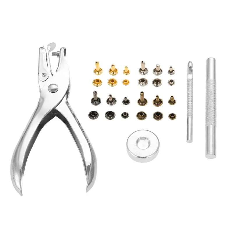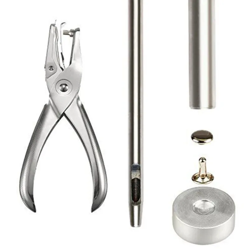 360Pcs/Set Leather Rivets Double Cap Rivet Tubular Metal Studs 1 Sizes with Punch Pliers and 3 Pieces Setting Tool Kit for Leather Craft Repairs Decoration