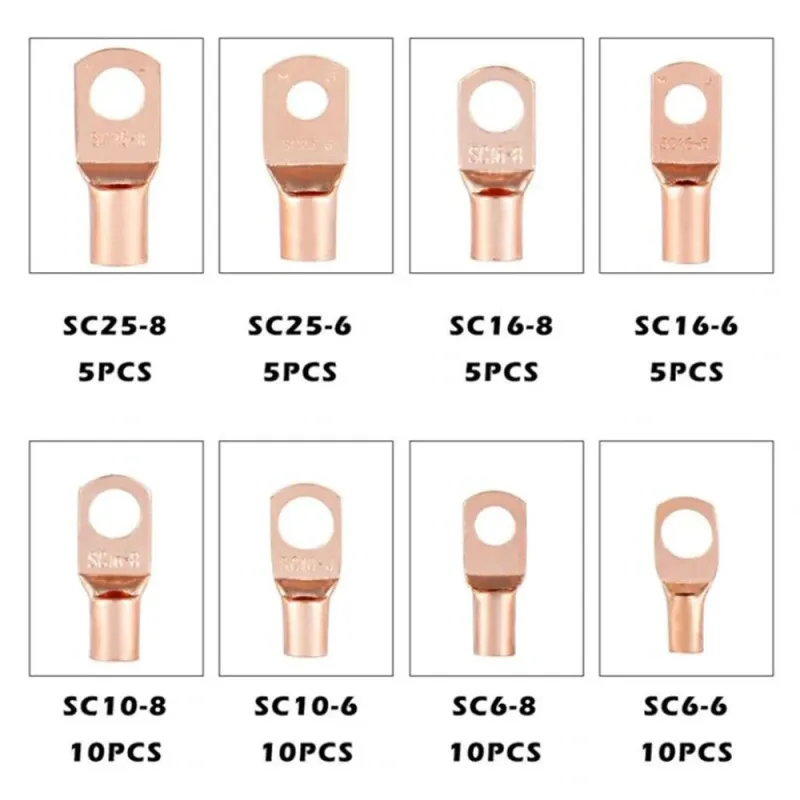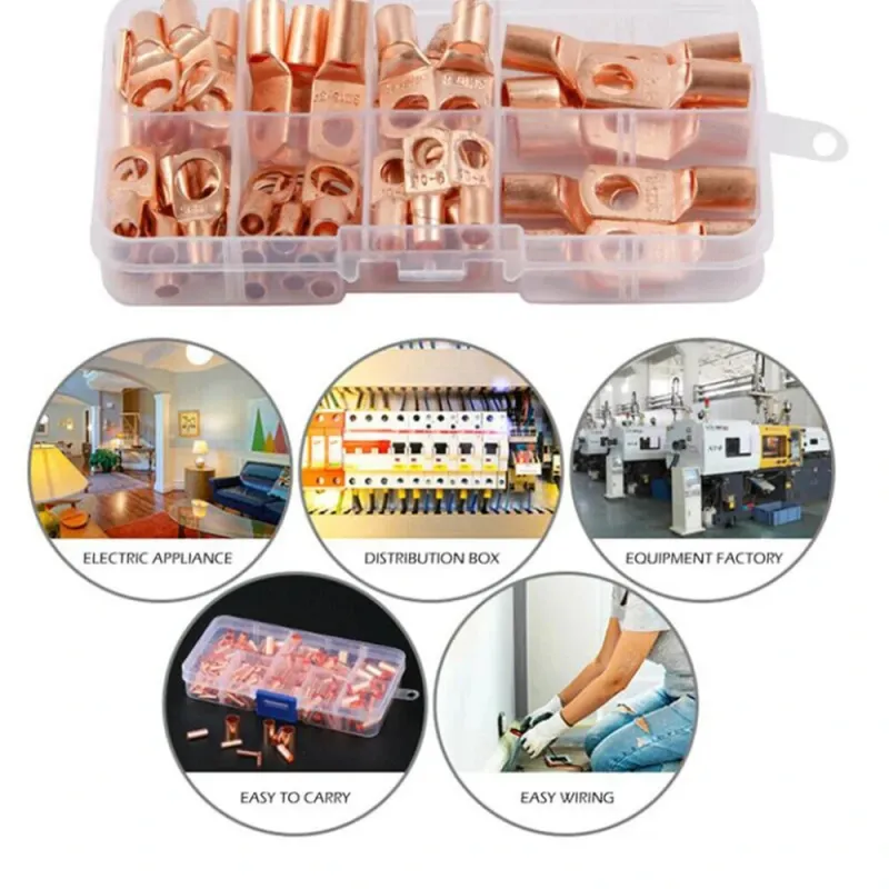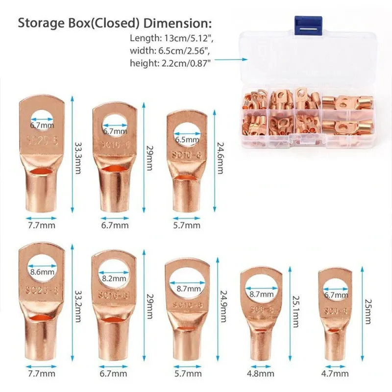 60pcs Wire Lug Copper Ring SC6-25 Copper Connectors Bare Cable Electric Crimp Terminal Connector Kit