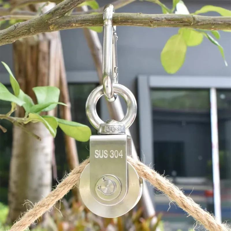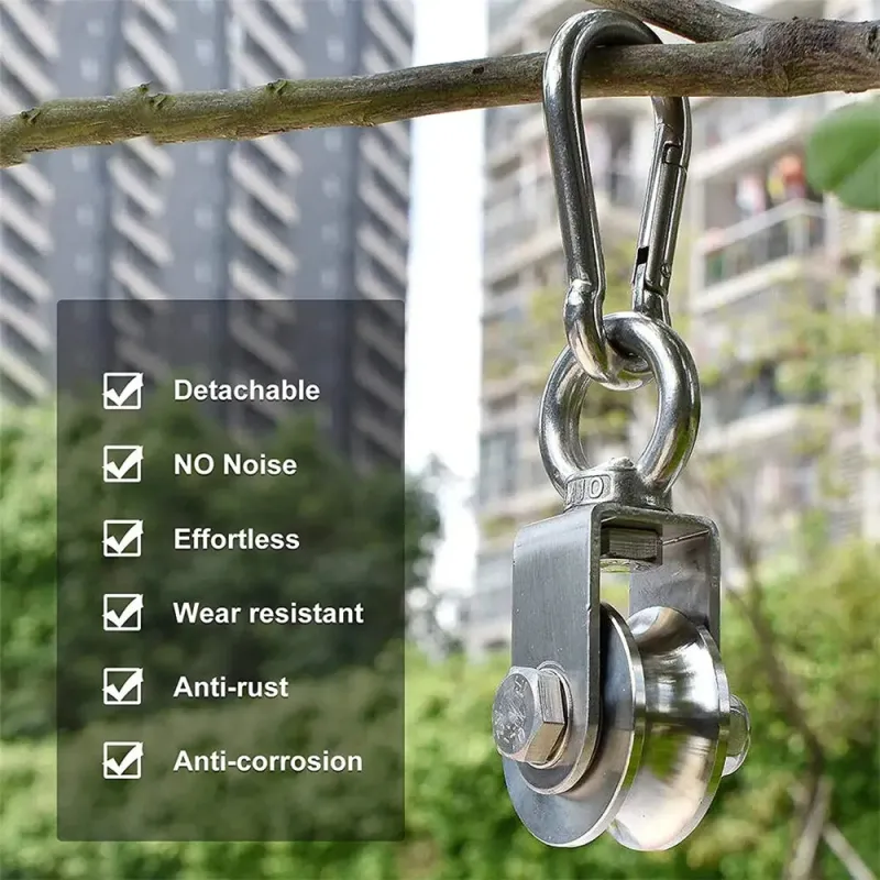 304 Stainless Steel Swivel Pulley Duplex Bearing Ultra Silent Detachable Rotation Heavy Duty Traction Wheel 280kg Load Capacity 360 Degree for Indoor Outdoor Rope Tool