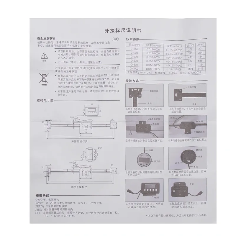 0-300mm 0.01 mm DRO Magnetic Remote Digital Readout Digital Linear Scale External Display