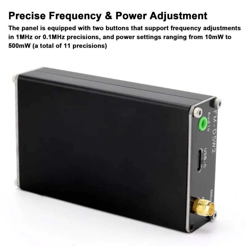 0.5W Frequency Modulation Emitter 76-108Mhz 500mW Digital Display Stereo Transmitting Device Type-C Interface with 2000M Transmission Distance for Churches Car Radio Broadcast