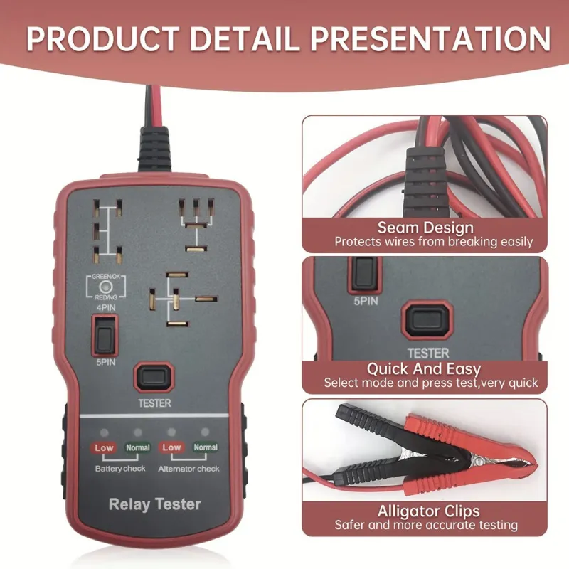 12V LED Car Battery & Relay Tester Quick Diagnostic Tool for Automotive Electrical Problems Supports 4/ 5 Pin Relays