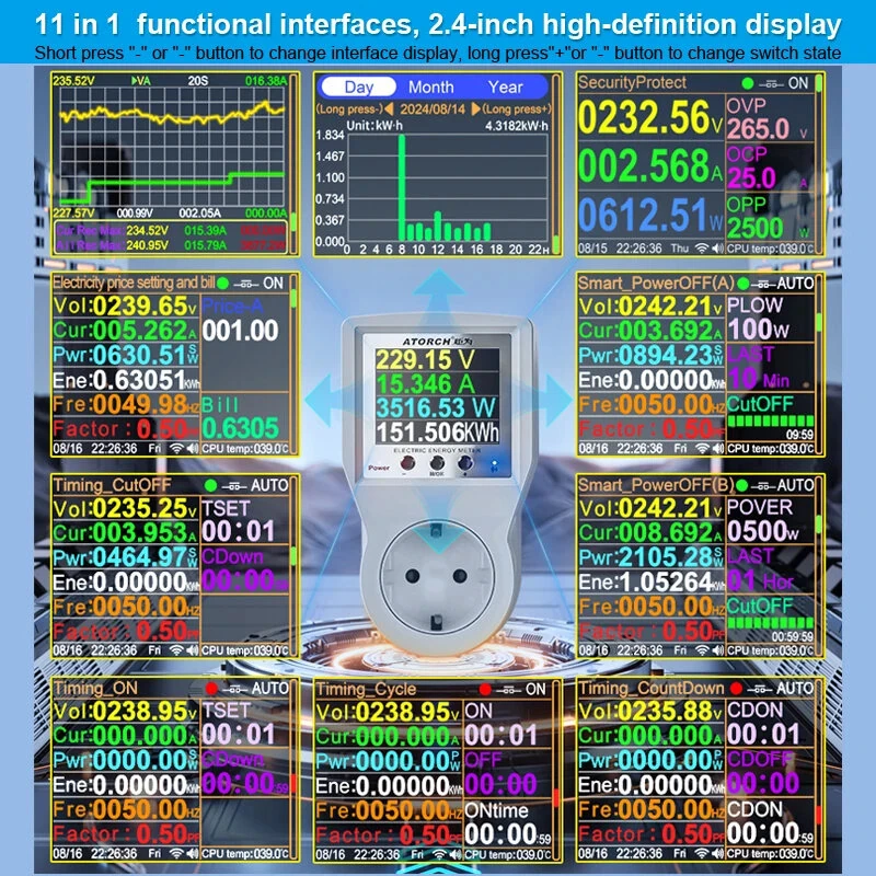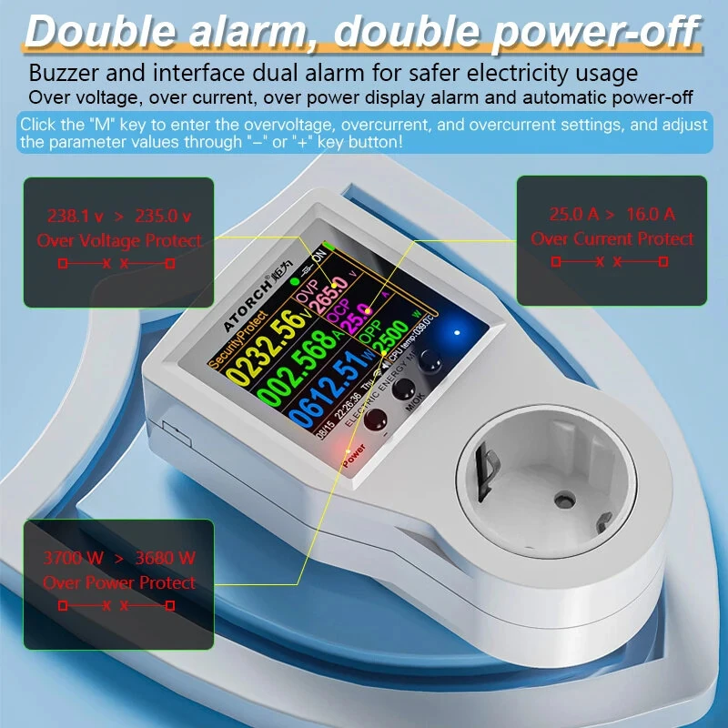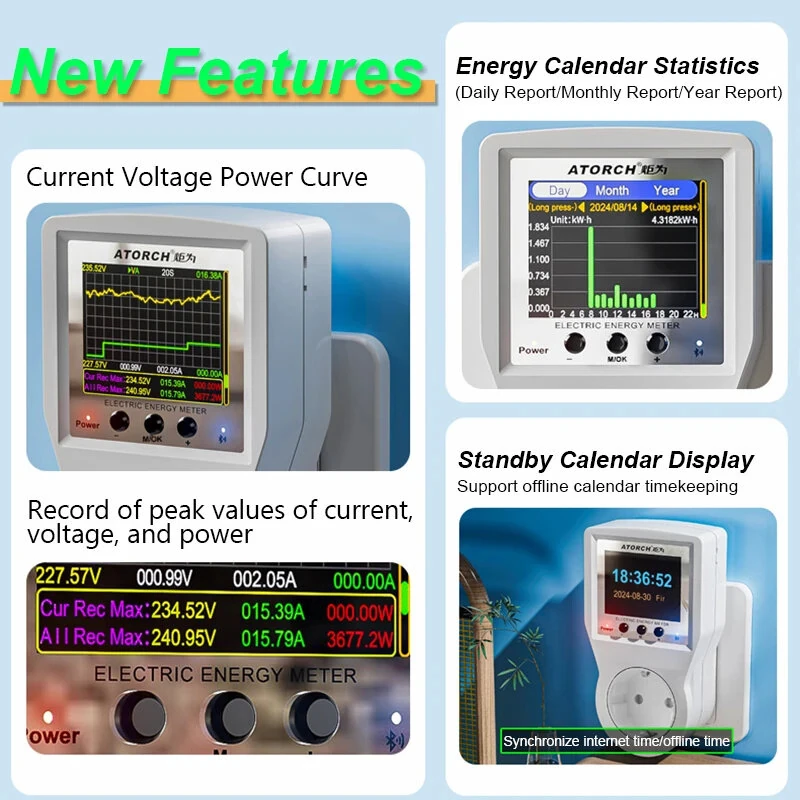 ATORCH S1BWP WiFi Smart Metering Socket AC85-265V 16A Power Monitor Tuya App Remote Control Bluetooth Enabled