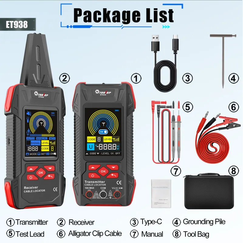 AV TOOLTOP ET938 ET938PRO 3-in-1 Wire Locator Multimeter Infrared Thermal Imaging Camera LCD Screen Rechargeable Lithium Battery Cable Tracking Depth Up to 2m Wide Temperature Range Multitool