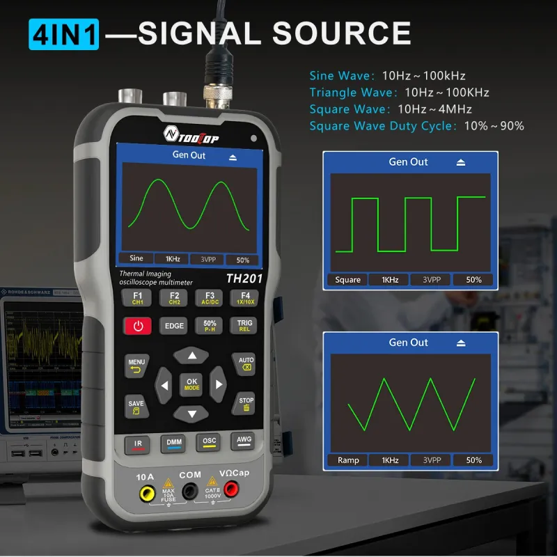 AV TOOLTOP TH201 4 in 1 Digital 2CH*70MHZ Oscilloscope Multimeter Thermal Imaging ISR 288x240 Camera 70MHz Resolution Signal Generator