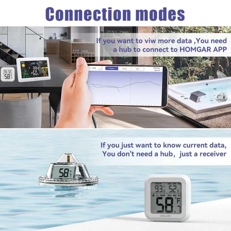 BALDR Digital Swimming Pool Thermometer -9.9-50 Range Accurate 360 Degree View Connects to HOMGAR App Indoor Humidity Temperature Measurement