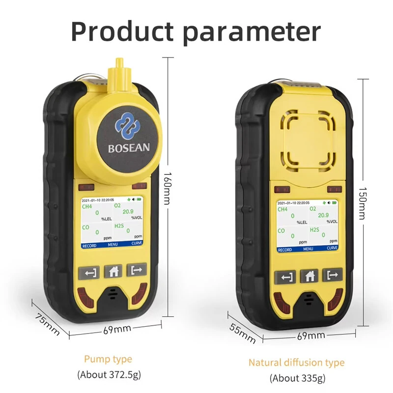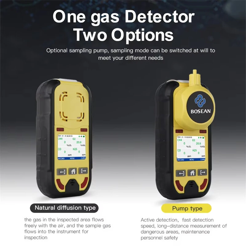 Bosean Multi Gas Detector O2 H2S CO LEL 4-in-1 Portable Gas Monitor Rechargeable Type-C 2-Inch Screen USB Real Time