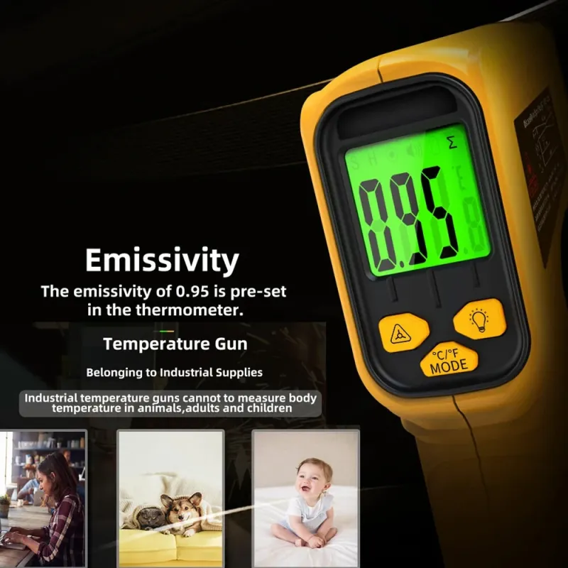 BSIDE H2 Infrared Laser Thermometer -50 to 530 High Precision Non-Contact 12:1 Ratio Adjustable Emissivity LCD Backlit Display