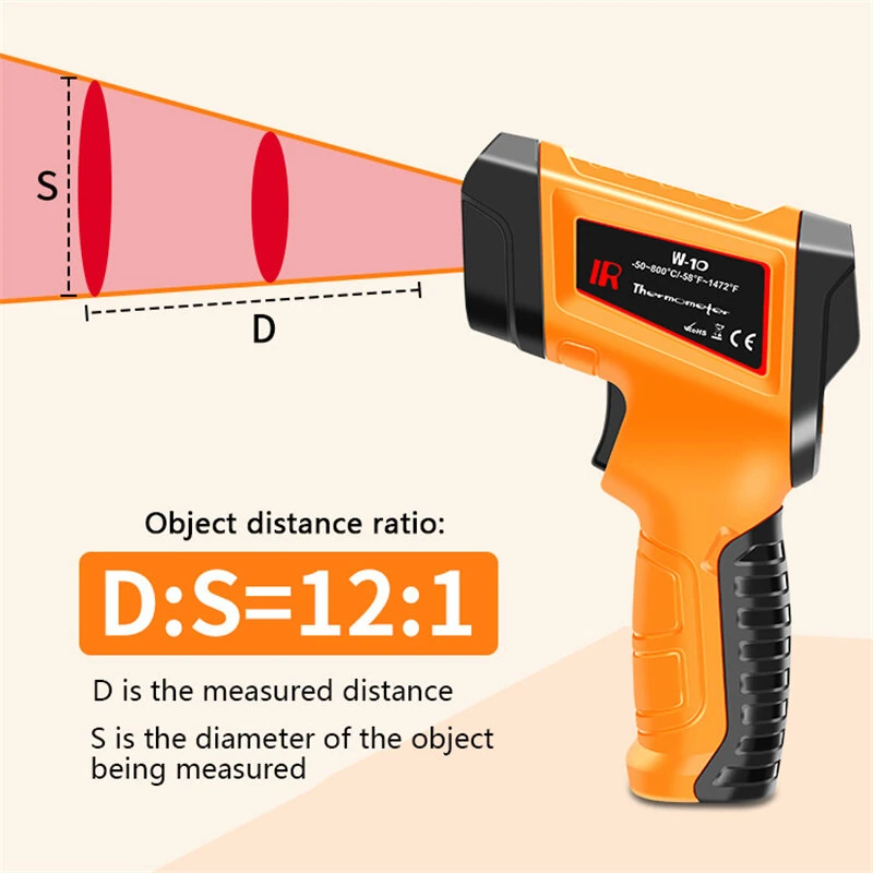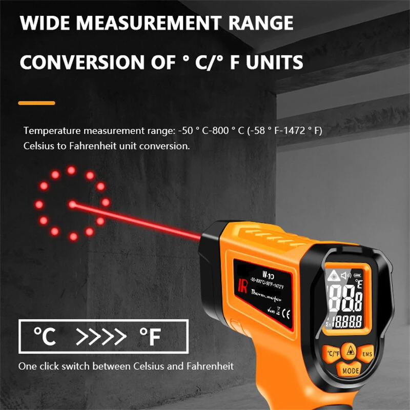 CZDANG W-10 Infrared Thermometer -50C to 800C 13-Point Laser Precision 12:1 Distance Ratio Digital Temperature Gun Fast Readings Adjustable Emissivity