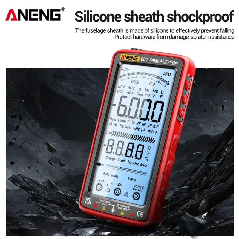 ANENG 681 Rechargable Digital Professional Multimeter Non-contact Voltage Tester AC/DC Voltage Meter Touch Screen Current Tester