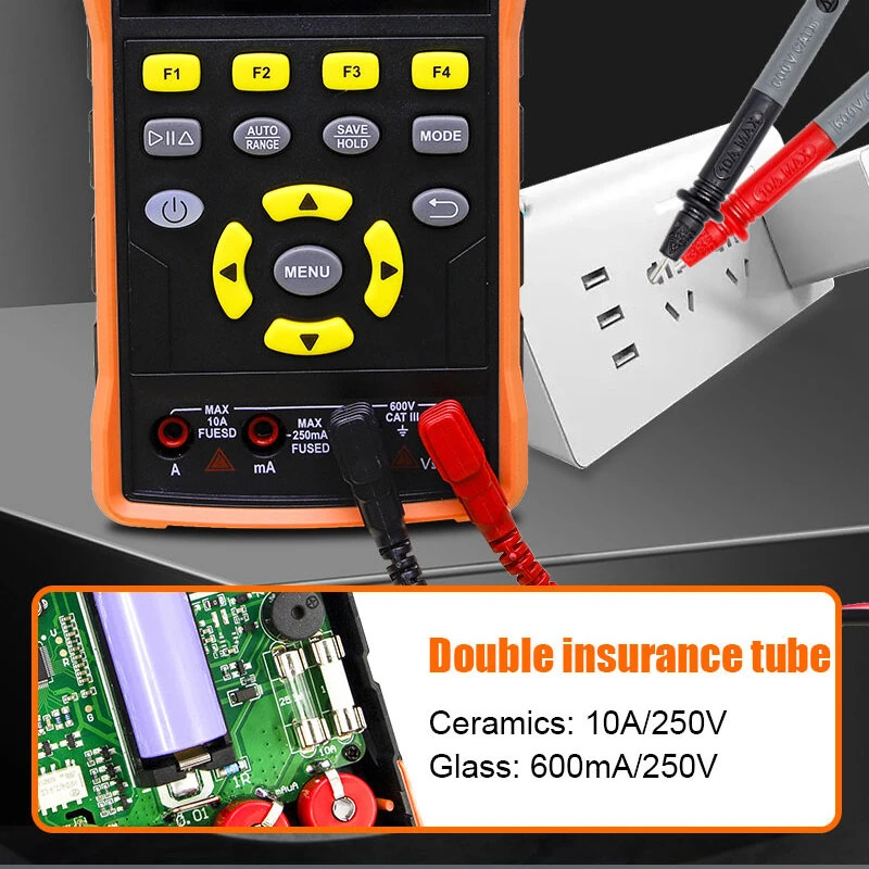 ET852C 3 in 1 2*50MHz Bandwidth Oscilloscope 200MSa Sampling Rate Dual Channel Oscilloscope Multimeter Design High Impedance Square WaveSignal Generator Rechargeable Lithium Battery