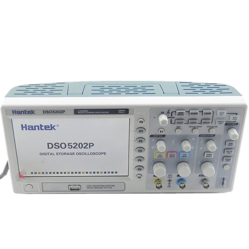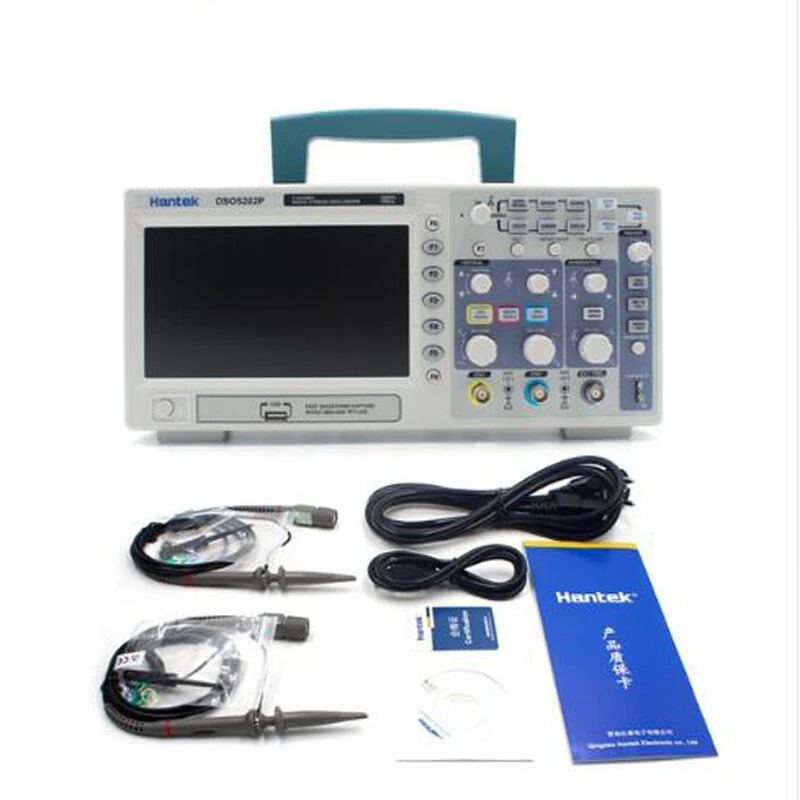 Hantek DSO5202P Digital Oscilloscope 200MHz Bandwidth 1GSa/s Sample Rate 2 Channels 7 Inch Color Screen USB Connectivity FFT Analysis