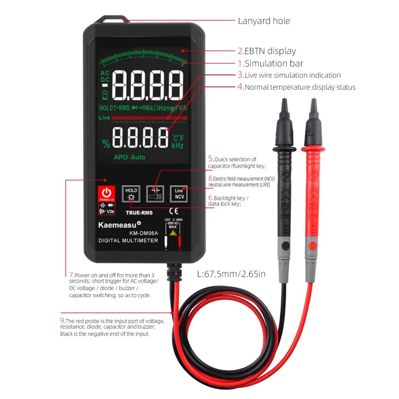 Kaemeasu KM-DM06A 6000 Counts Smart Mini Touch Digital Multimeter with Color Screen True RMS Measurement Auto Recognition Ideal for Electronic Repair