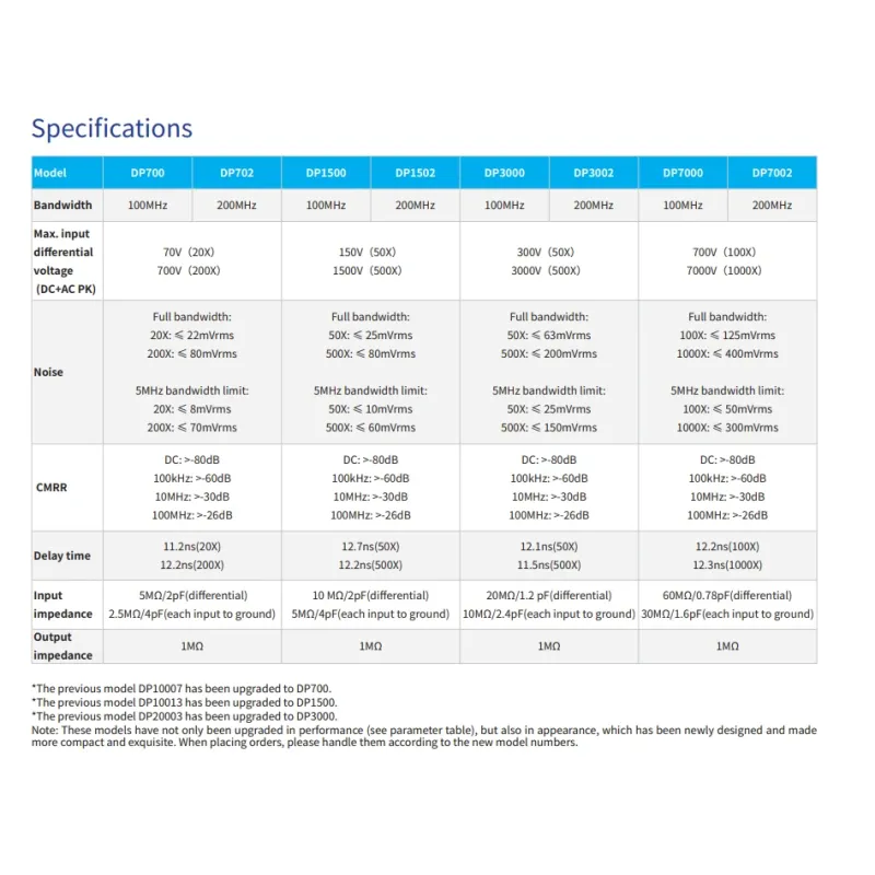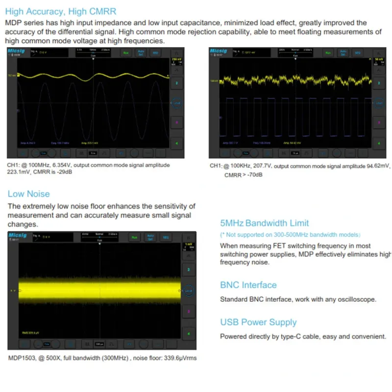 Micsig DP701/DP702/DP3001/DP3002/DP1501/DP1502 MDP Series High Voltage Differential Probe High Bandwidth 150MHz - 200MHz Wide Voltage Range 700Vpk-3000Vpk Suitable for Multiple Oscilloscope Models
