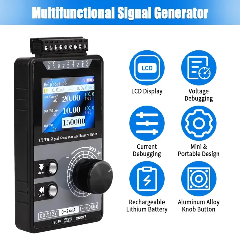 Multifunctional PWM Signal Generator Handheld Current Source 0-20mA 4-20mA 12V 50V Measurement 320x240 TFT Screen Adjustable Frequency USB Rechargeable