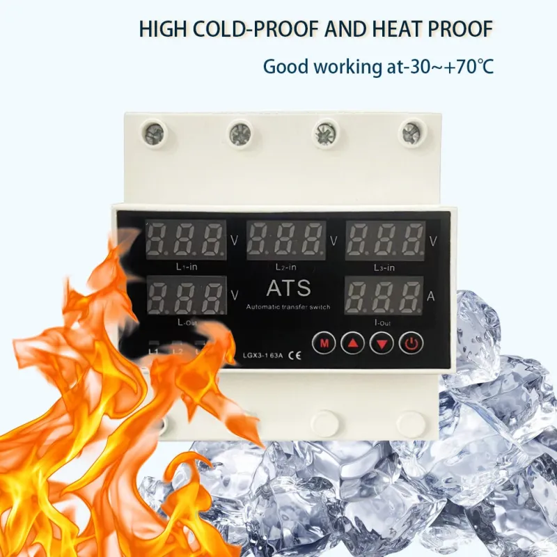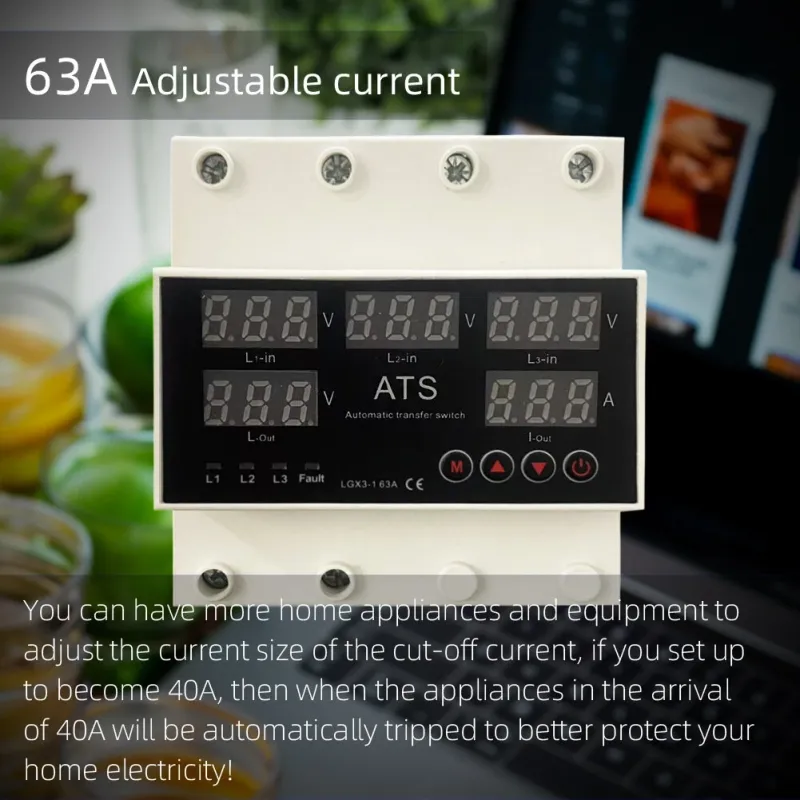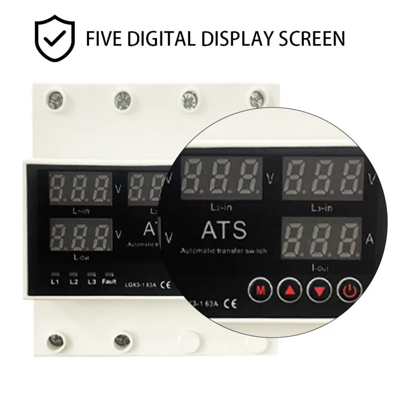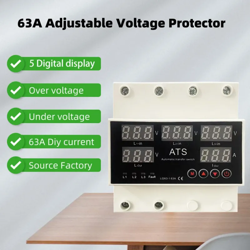 Five-Screen Auto-Switching Three-Phase Digital Voltage Protector 63A 220V Adjustable Over/Under Voltage Protection Device with Real-Time Monitoring