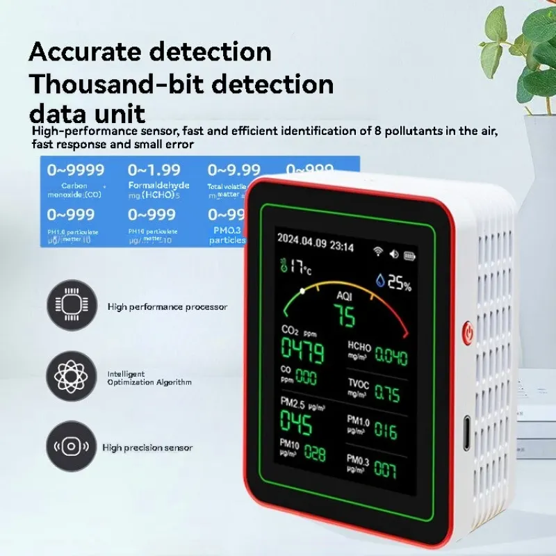 15-in-1 Air Quality Monitor Wifi Tuya App 15-in-1 Smart Tester With stand CO2 CO TVOC HCHO PM2.5 PM1.0 PM10 AQI Battery Powered Real-Time Display for Home Office