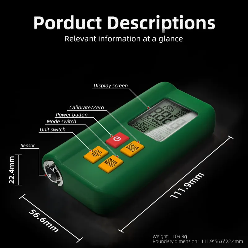 BSIDE Coating Thickness Gauge Rechargeable Car Paint Film Thickness Tester Tool 0.1micron/0-1500m Fe/NFe MAX/MIN Measuring