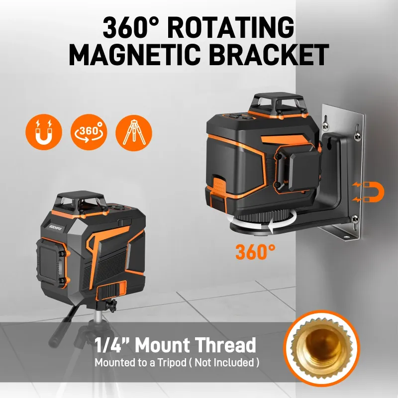 GOCHIFIX 2x360 Laser Level Leveling Green 360 Self Line Laser Level Tool Wall Suction Stand Receiver 100ft Line Laser for Picture Hanging Outdoor Rechargeable Battery,2x360,2D