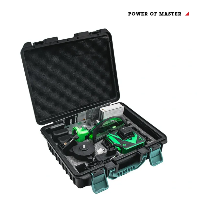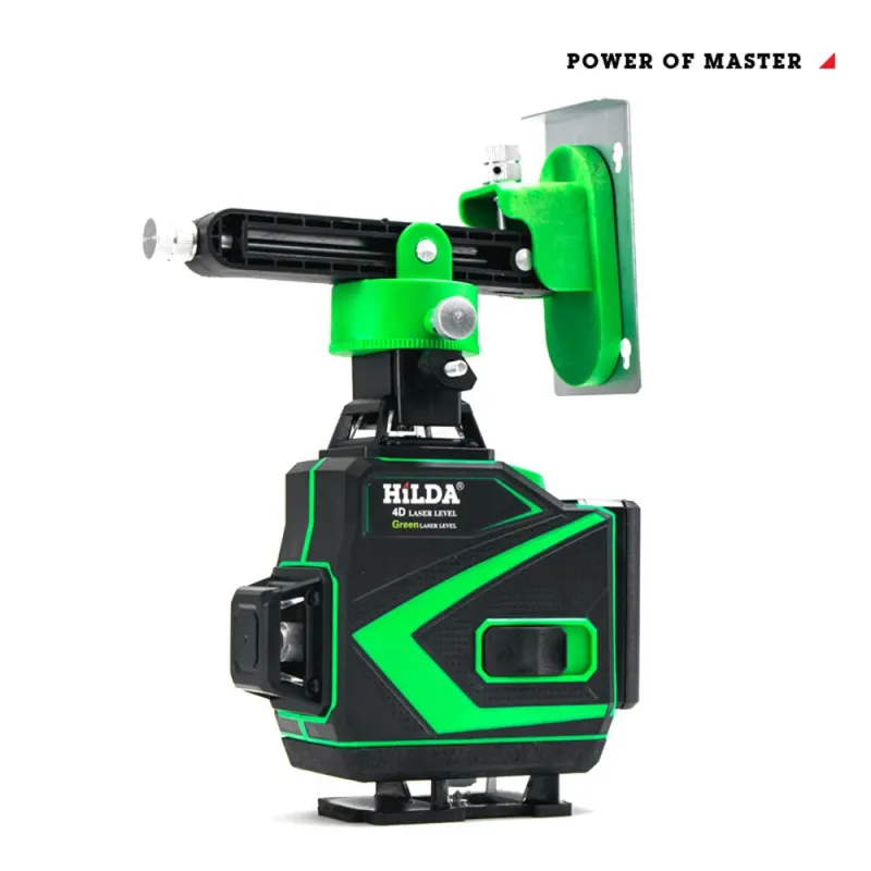 HILDA 16 Line Green Light Laser Level Double Batteries Meter Automatic Leveling Adjustable Precision EU Plug for Construction