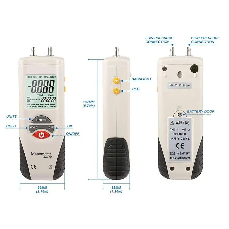 HTI HT-1890 Gas Pressure Gauge Manometer Handheld Digital Manometer Data Hold Medidor Presion