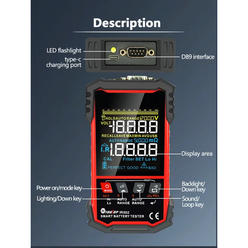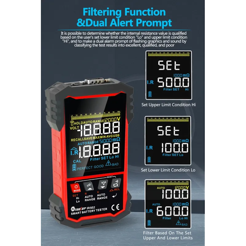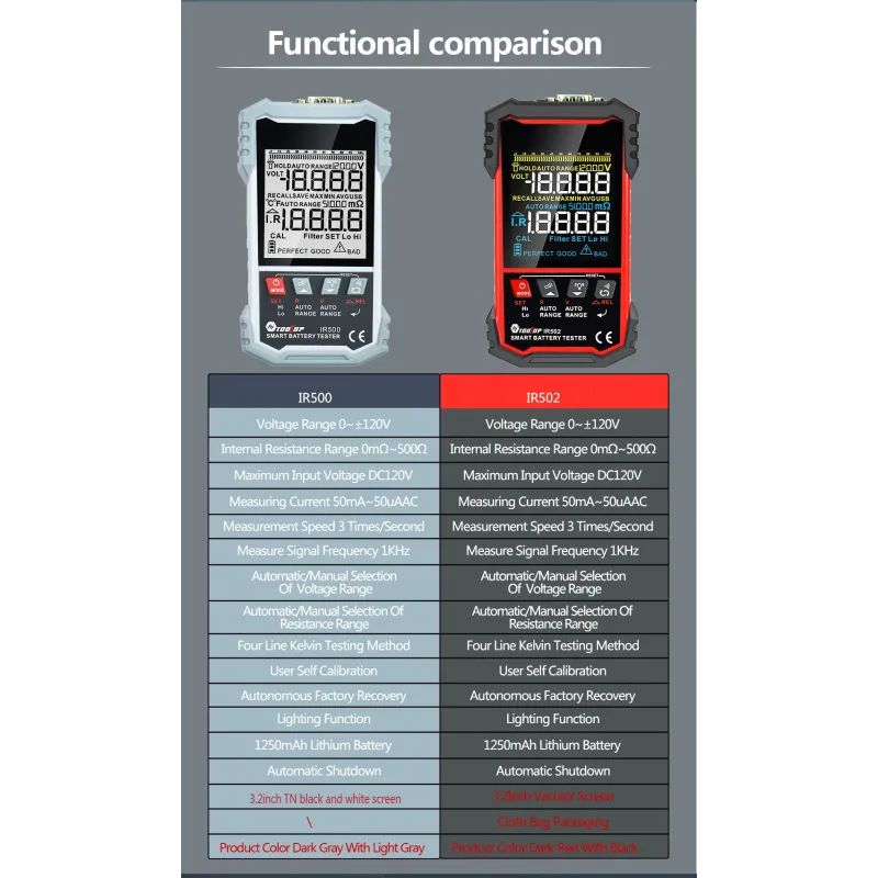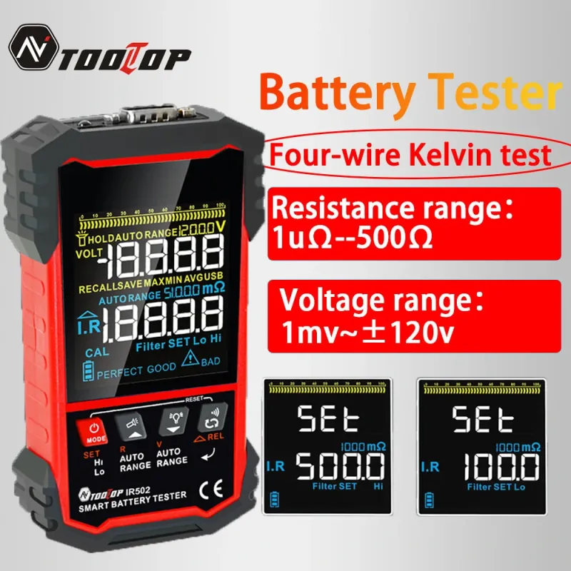 MUSTOOL IR502/IR500 120V 500 Battery Internal Resistance Tester 4-Wire Kelvin Test Lead-acid Lithium Nickel-cadmium Batteries Tool