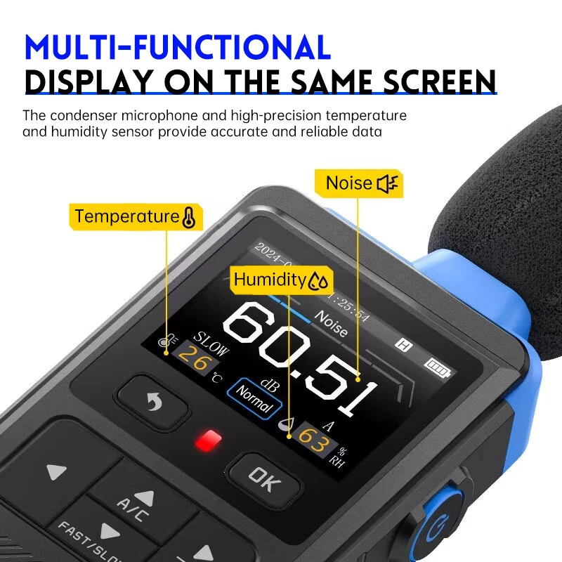 FNIRSI FDM02 Professional Noise Meter High Precision 30dB to 130dB Measurement A C Weighting Color Screen Sound Level Analyzer Accurate Decibel Reader
