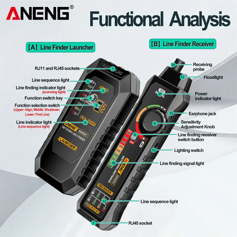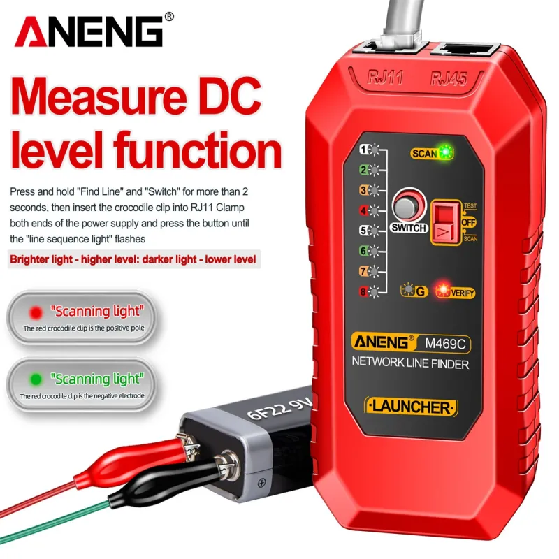 ANENG M469C Network Line Finder RJ11 RJ45 Cable Tracer 9V Battery Flashlight Auto Shutdown Low Voltage Alert