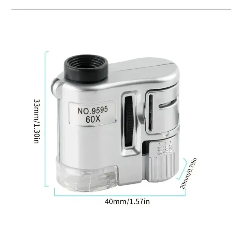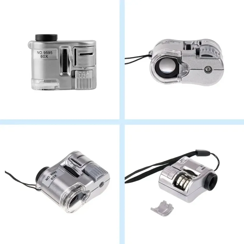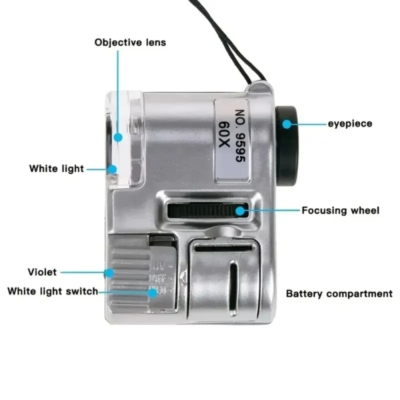 60X Handheld Mini Pocket Magnifier with UV and LED Light Portable Jeweler Microscope Magnifying Glass for Detailed Inspection Currency Tester Industrial Education and Home Use