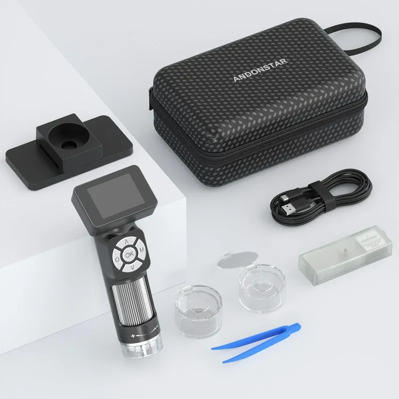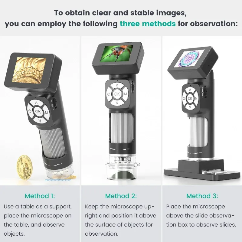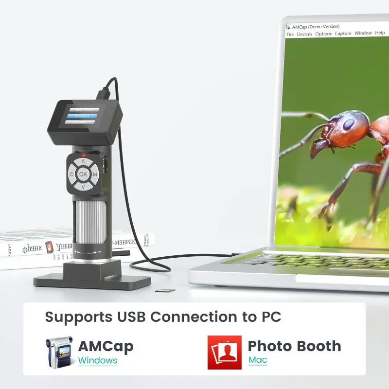 AD112 Portable Pocket 500X Microscope Kit 2-inch LCD Screen Handheld Digital Microscope with 8 Adjustable LED Lights Supports USB Connection to PC for Kids and Adults