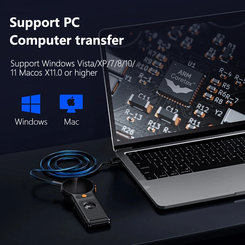 Handheld Digital Microscope 500X Magnification Foldable 2MP Camera 2 Inch IPS Screen 8 LED Adjustable Light Type-C Port Rechargeable Battery Support PC Computer transfer