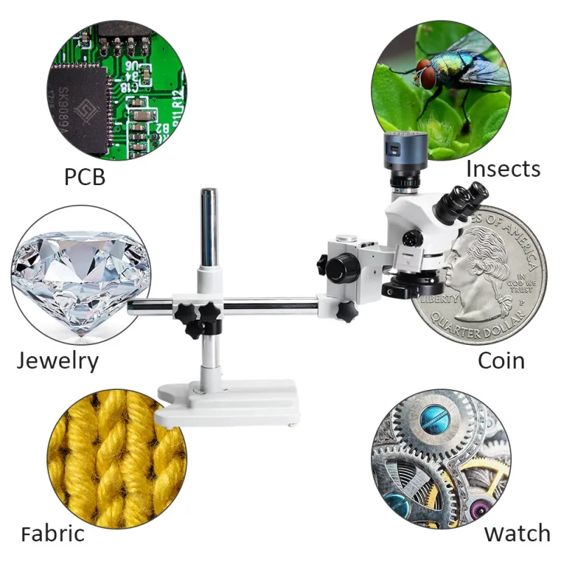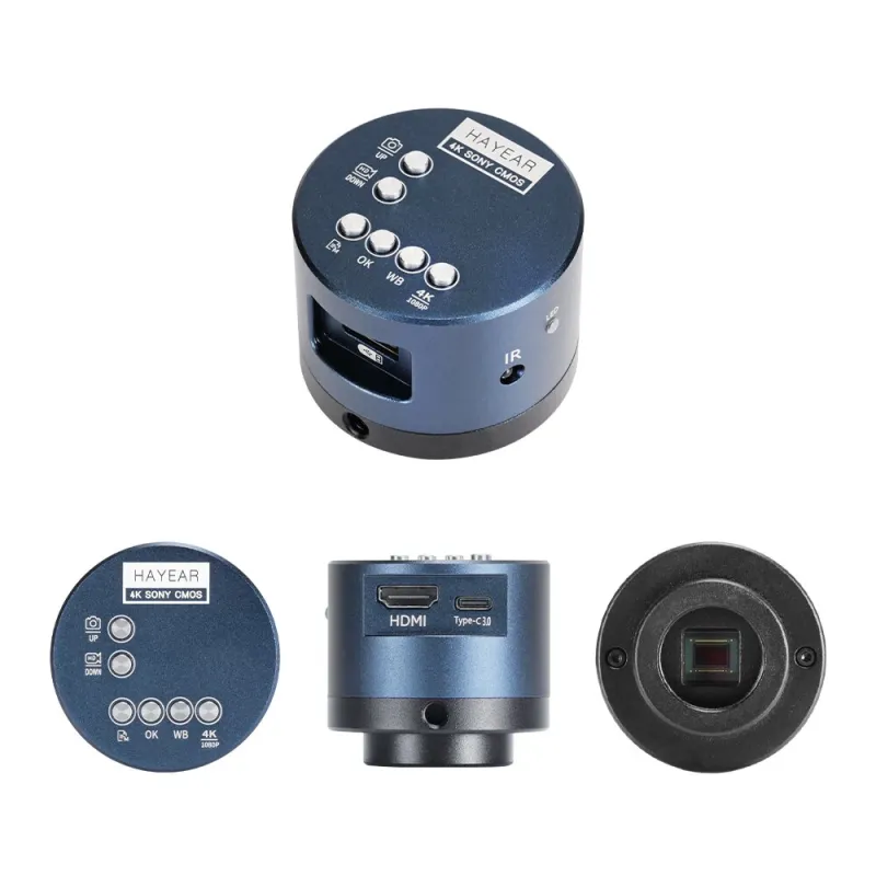 HAYEAR 3.5X-200X Magnification Simul-Focal Trinocular Stereo Microscope 4K HDM Camera 144 LED Ring Light Metal Boom Stand Precision Imaging