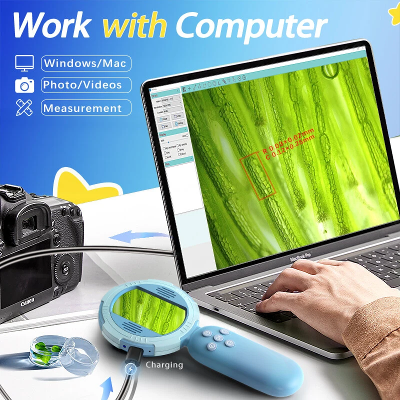 HM020C Handheld Digital Microscope HD IPS 2.0 Screen 8 LED Adjustable Lights Type-C Interface Automatic White Balance and Exposure Multilingual Support