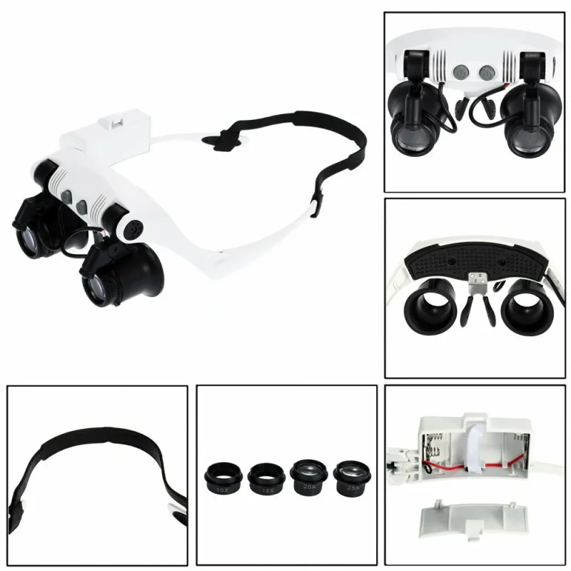 Portable Head Wearing Magnifying Glass 10X 15X 20X 25X LED Double Eye Repair Magnifier Loupe