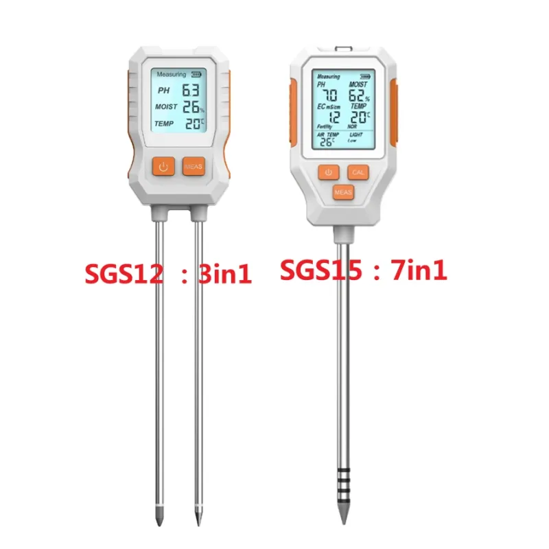 SGS12 3-in-1 SGS15 7-in-1 Soil Analyzer Measures Moisture Temperature pH EC Fertility Light Air Temperature Foldable Digital Display