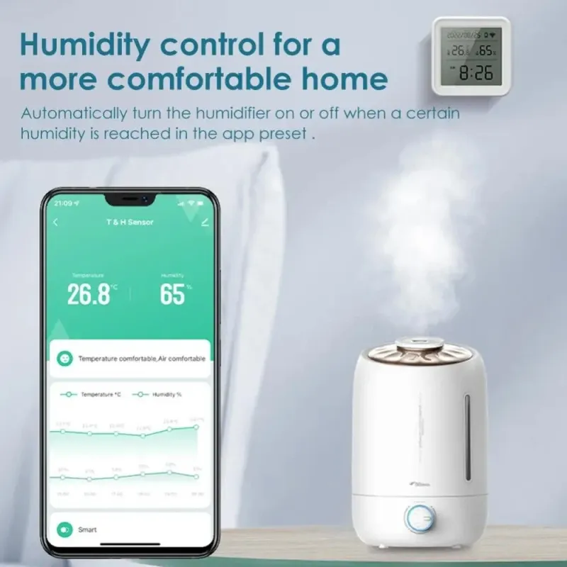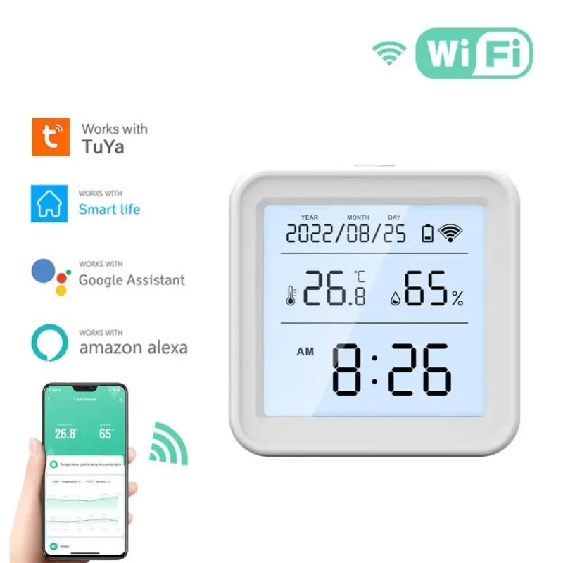 Smart WiFi Hygrometer Thermometer Sensor Indoor Temperature Humidity Monitor Works with Alexa Google Home High Accuracy Remote Control App Sync Time Display