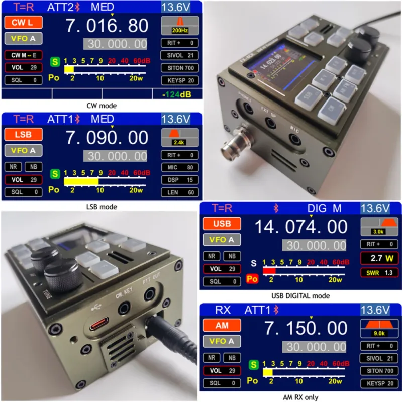 FX-4CR 3rd Generation V3 Radio SDR HF Transceiver 1-20W Adjustable Power USB LSB CW AM FM Modes Bluetooth Type-C Port