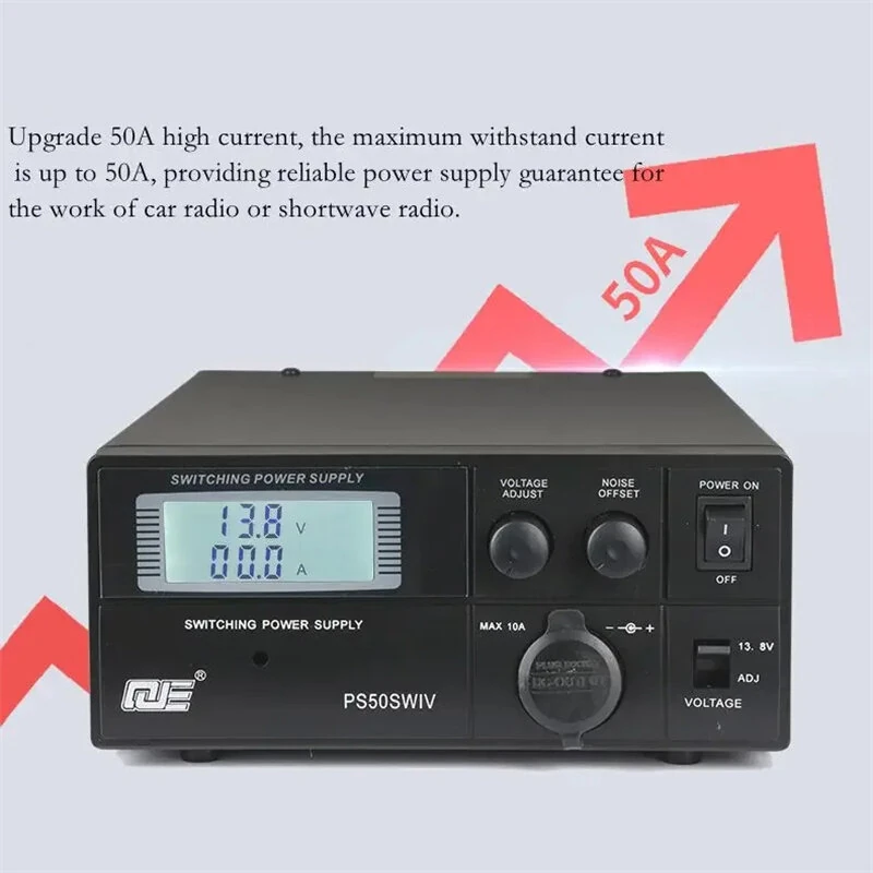 PS50SWIV DC Power Supply 50A High Current Adjustable 9-15V with LCD Display Short Circuit Protection Temperature Controlled Fan