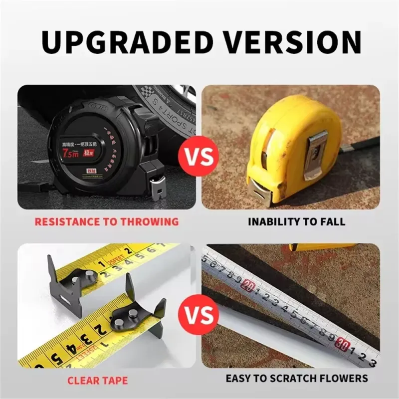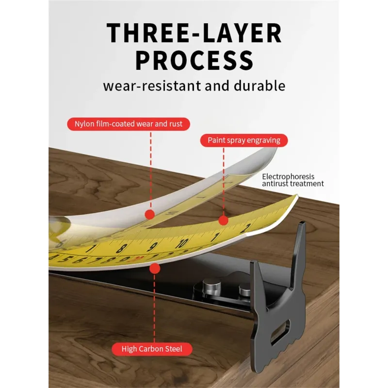 Stainless Steel Tape Measure Retractable with Lock Nylon Coated Wear-Resistant Waterproof High Precision Optional Sizes 3M 5M 7.5M
