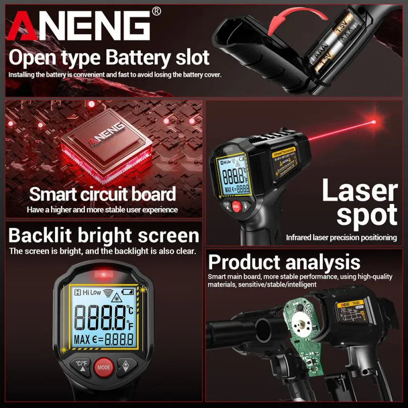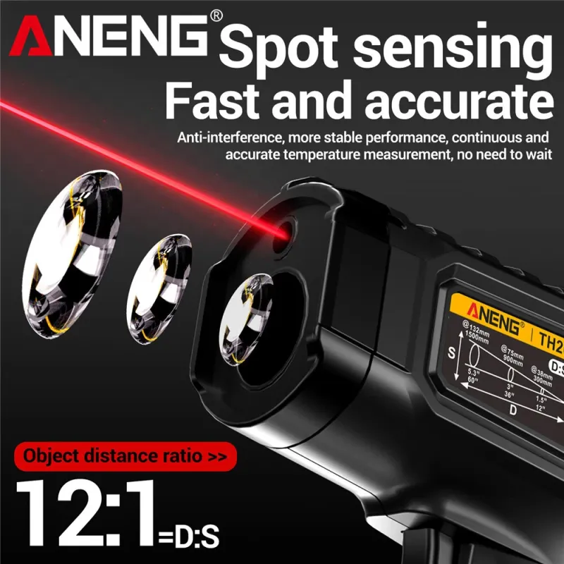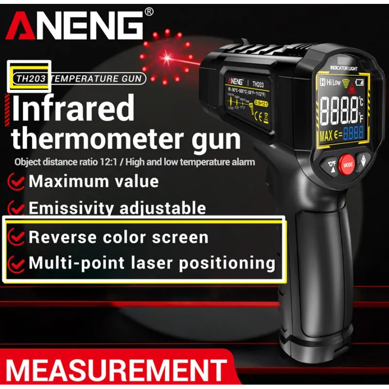 ANENG TH202 TH203 Infrared Thermometer Gun -50C to 600C Multi-Point Laser LCD Backlit Display Adjustable Emissivity High Accuracy Temperature