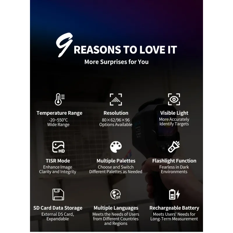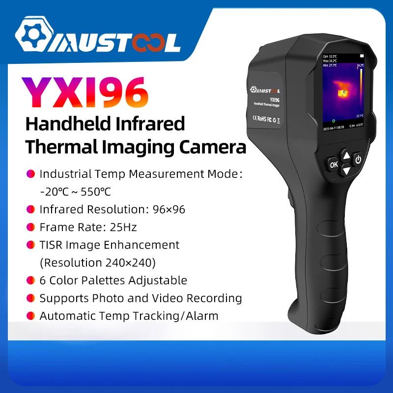 MUSTOOL YXI96 YXI96Pro Thermal Imaging Camera Infrared 240*240 Visible light Resolution 96x96 Temperature Range -20C to 550C TISR Technology Rechargeable Battery Photo Video Recording Handheld Thermal Inspection Device