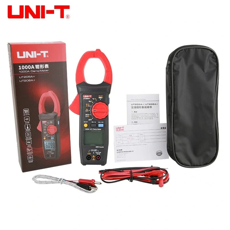 UNI-T Digital Clamp Meter UT206A+ 1000V AC DC Voltage 1000A Current Auto Range Temp Resistance Multimeter Ammeter Tester