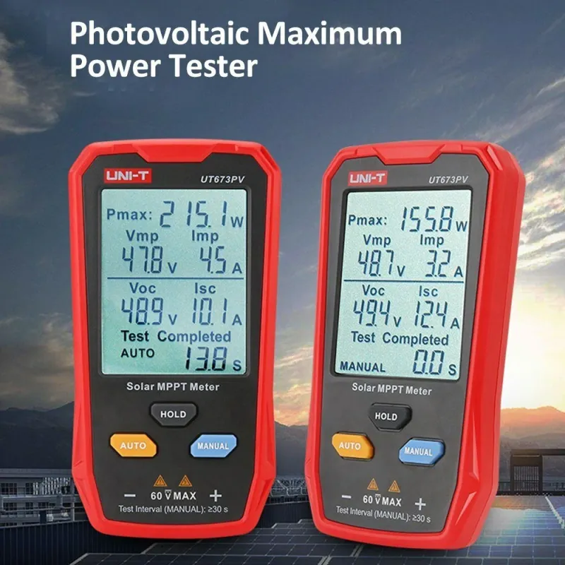 UNI-T Solar MPPT Meter UT673PV 5~800W Solar Power Maximum Point Tracker MPPT Tester with Pmax Voc Isc Measurement Large LCD Display Over Voltage and Current Protection Ideal for PV Panel Testing and Maintenance