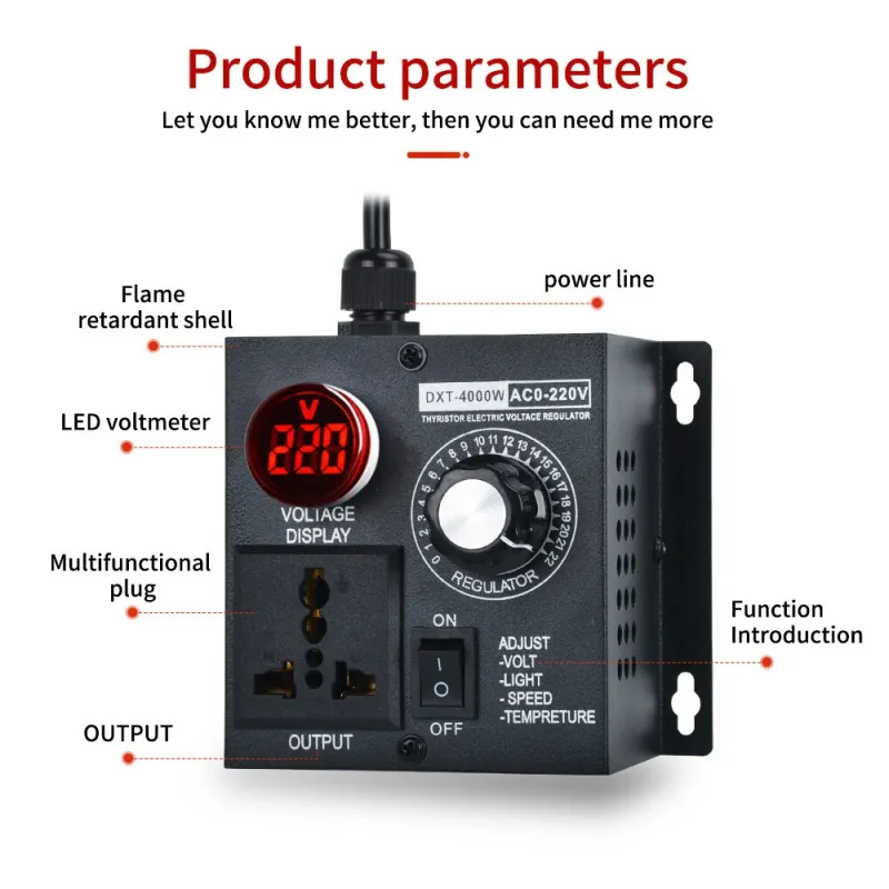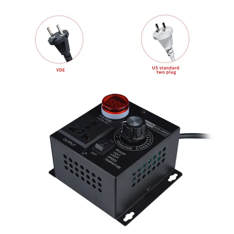 4000W Thyristor Electronic Voltage Regulator 4000W AC110V/220V Wide Control Range with Zero Lag Delay Voltage Absorption Circuit Multiple Protections Adjustable Output