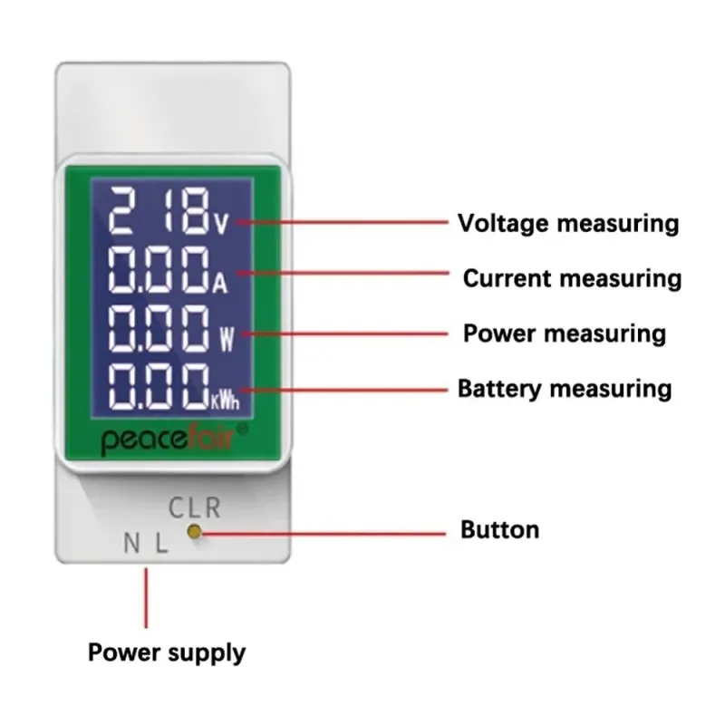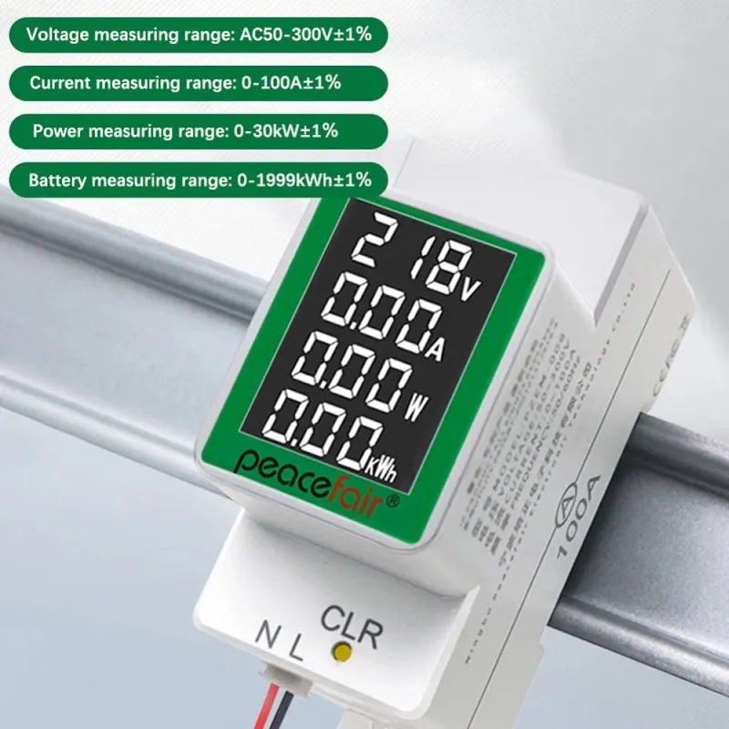 Peacefair PZEM-008 AC50-300V/100A LCD Screen Digital Voltagemeter Multifunctional with Active Power Battery and Current Measurement Backlight Feature