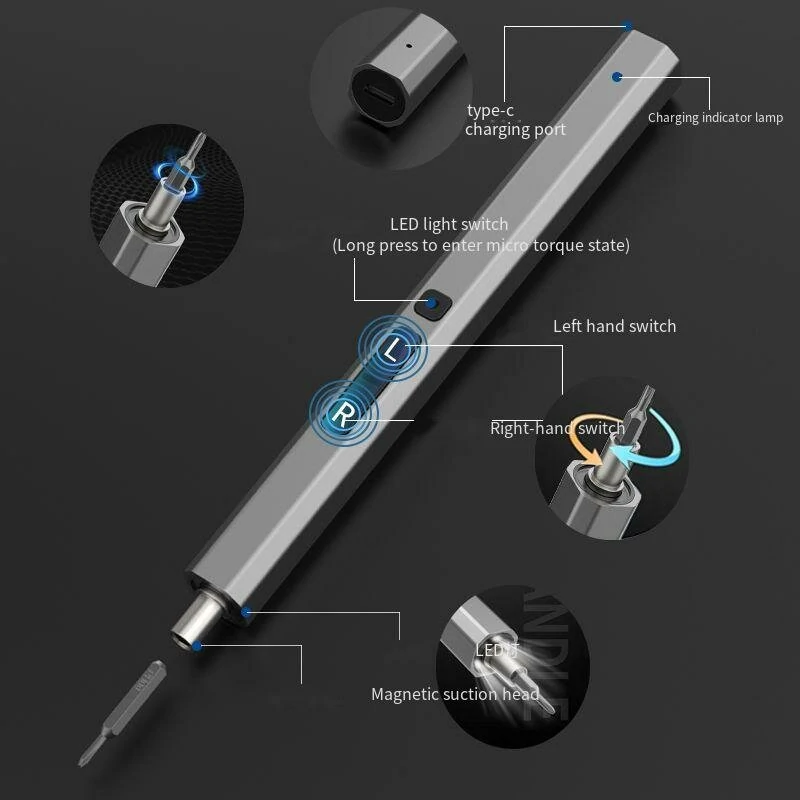 11 In 1 Precision Electric Screwdriver Set Type-C Fast Charging Screwdriver Set with LED Light Phone Repair Electric Tool