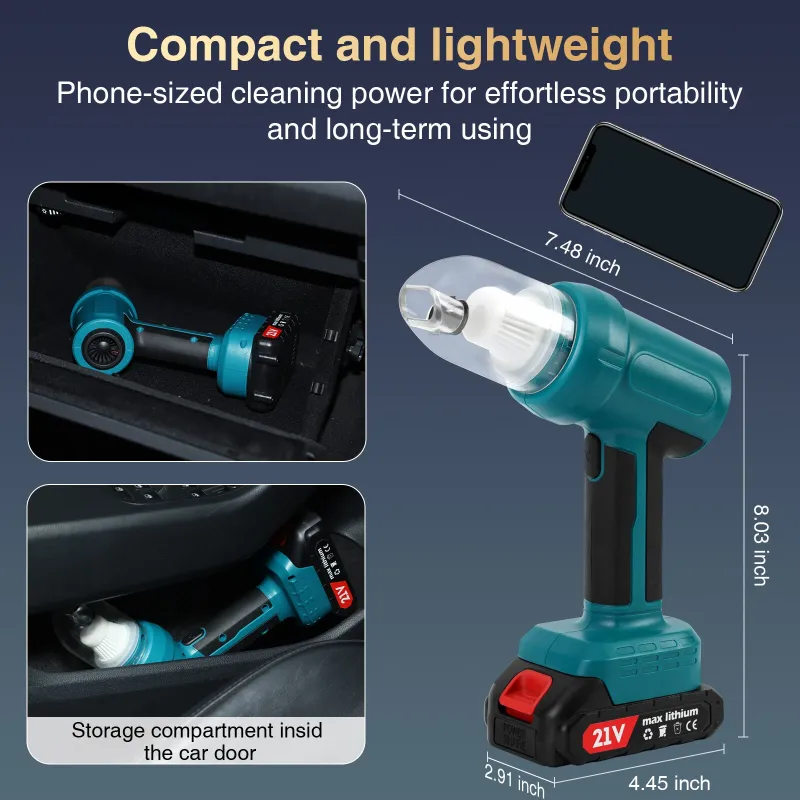 33000RPM Cordless Brushed Motor Vacuum Cleaner 250W High Suction Power Lightweight Design 21V Rechargeable Dry Cleaning Compact Dust Remover Portable Handheld Vacuum