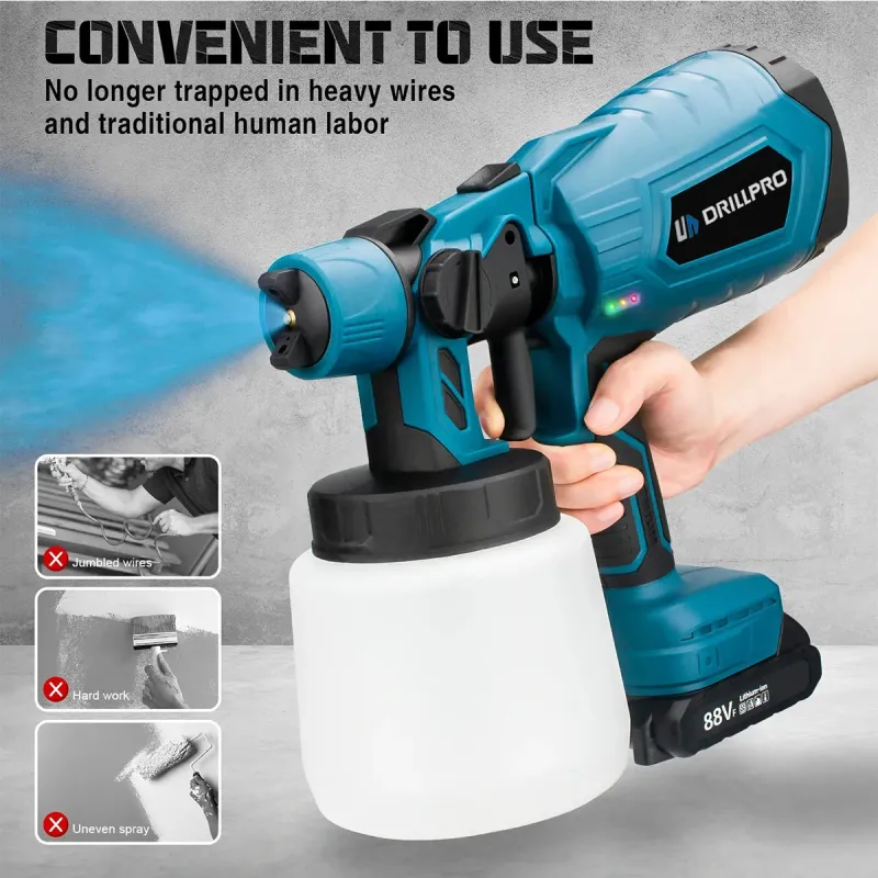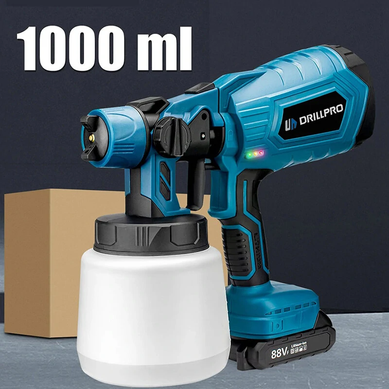 Drillpro 1000ML Cordless Electric Spray Gun Portable Household Paint Sprayer Auto Furniture Steel Coating Airbrush For Mak 18V Battery