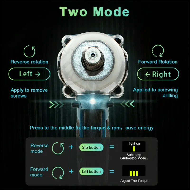 Drillpro 18V 0-3200RPM Cordless Impact Wrench Driver Brushless Motor With LED Light Electric Wrench Adapted for Makita DTW285Z